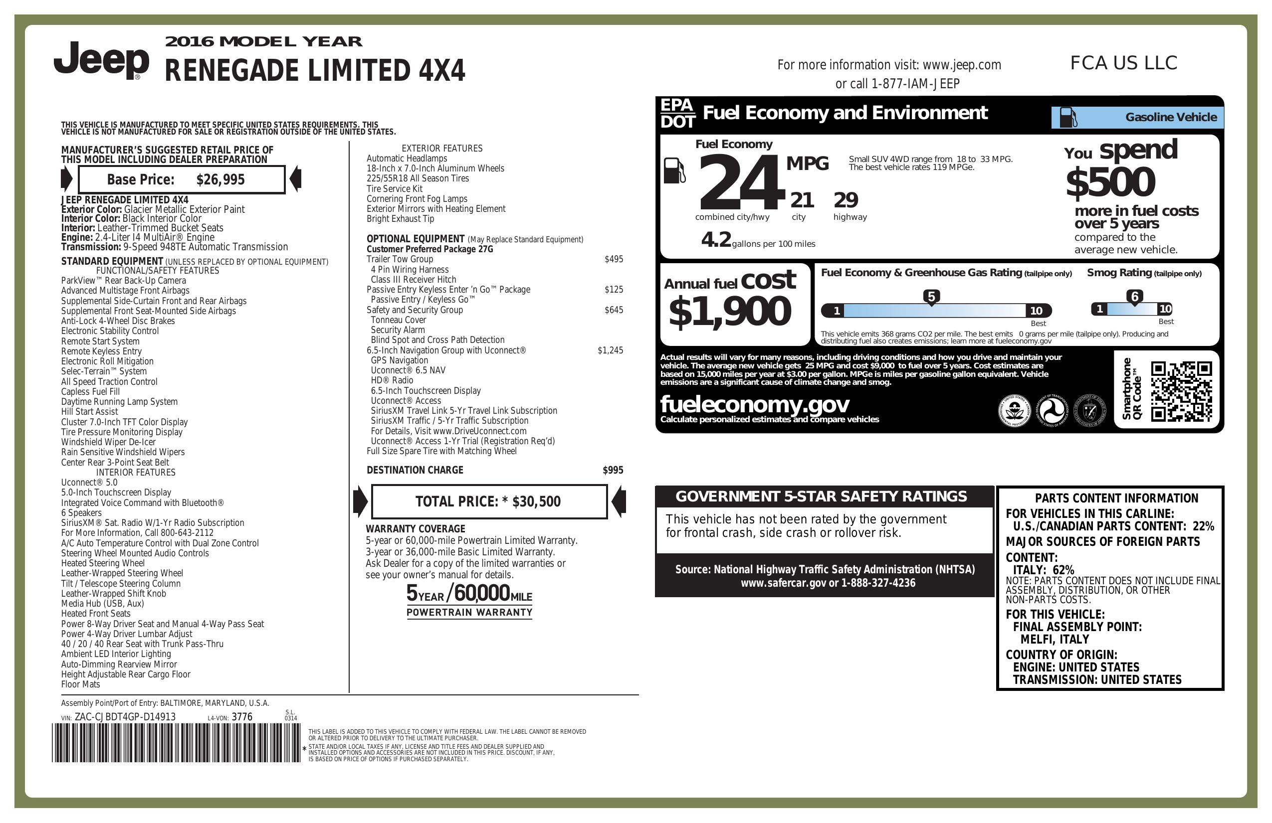 2016 Jeep Renegade 4 Wd 4dr Limited