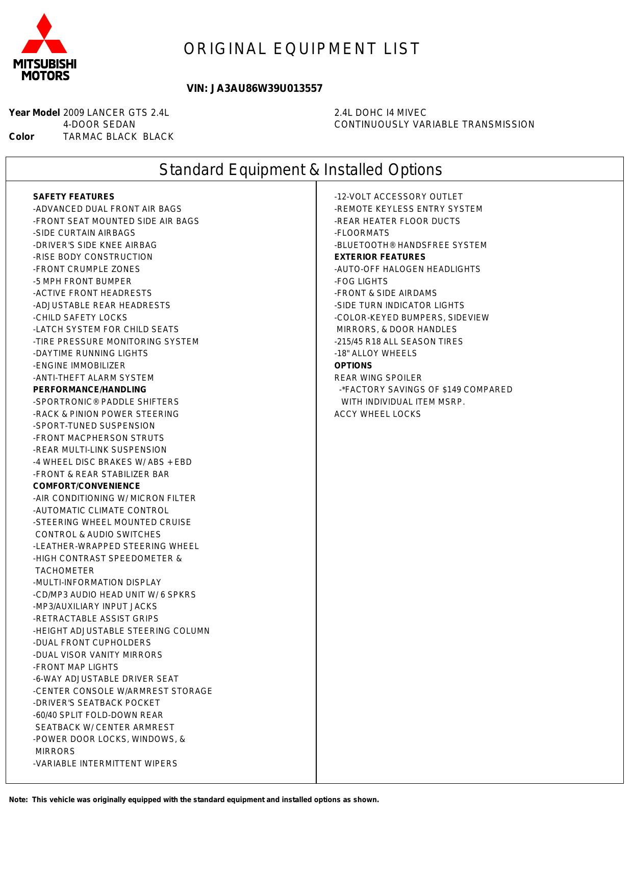 2009 Mitsubishi Lancer 4dr Sdn Gts