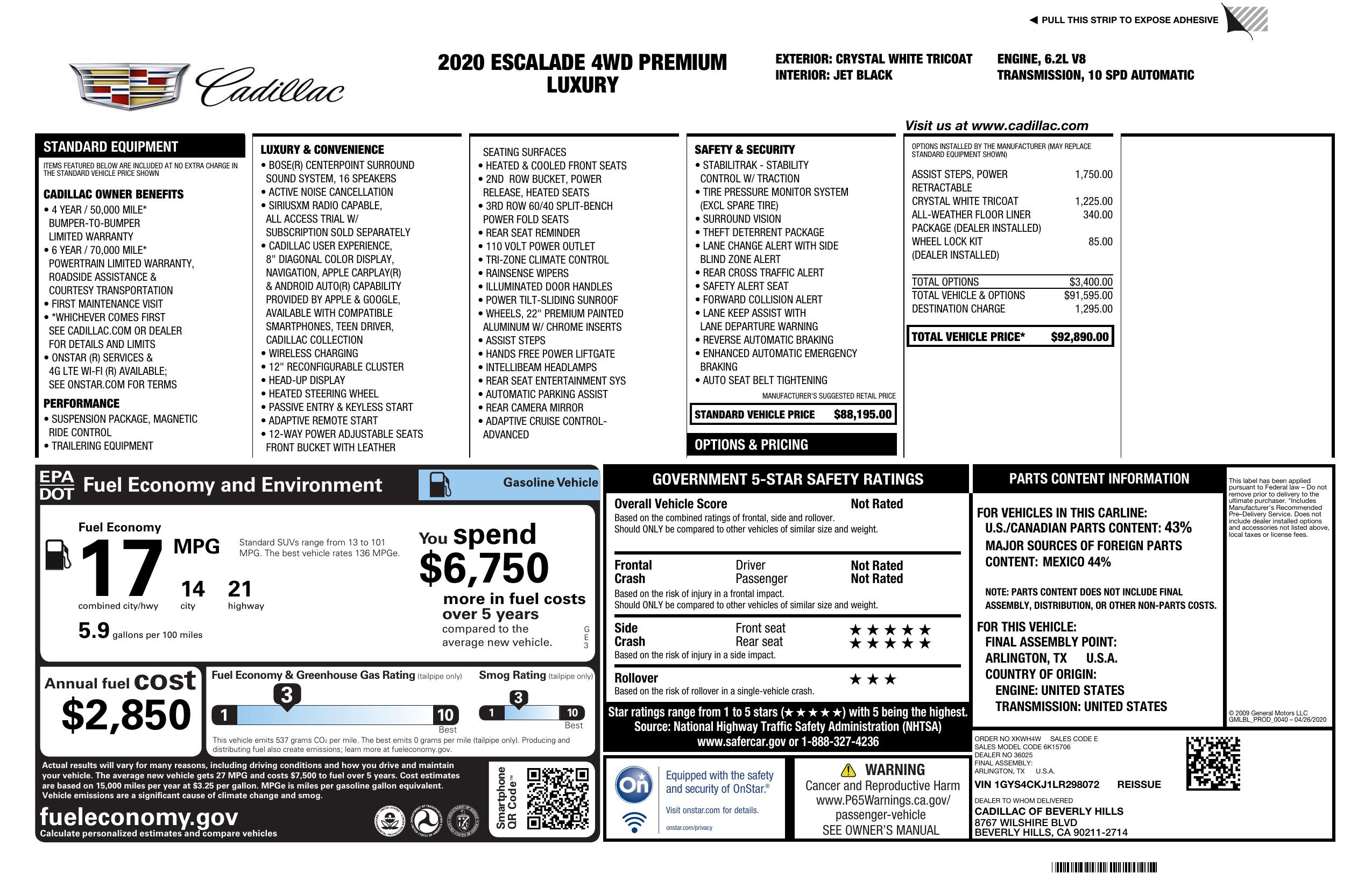 2020 Cadillac Escalade 4 Wd 4dr Premium Luxury