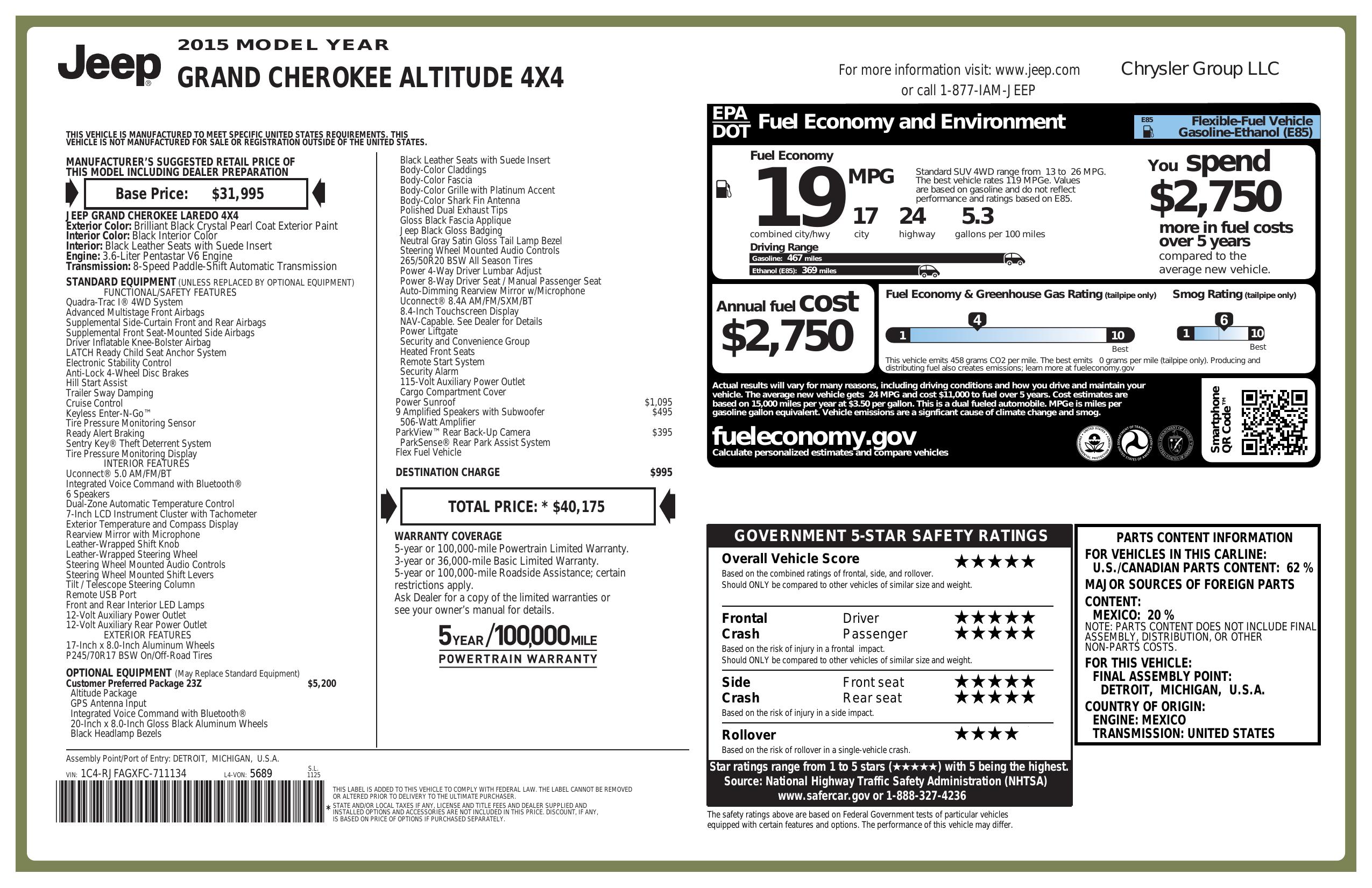 2015 Jeep Grand Cherokee 4 Wd 4dr Altitude