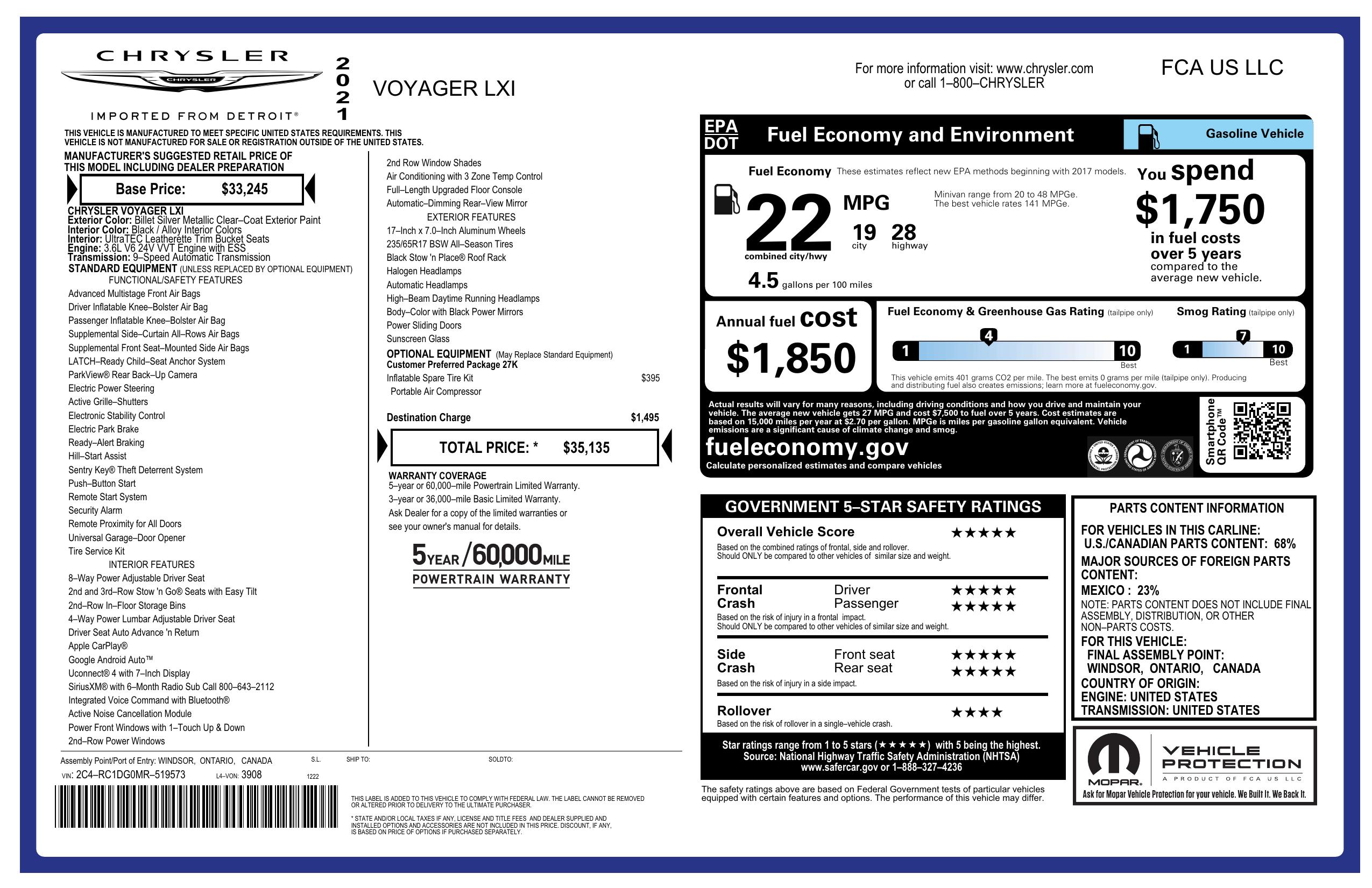 2021 Chrysler Voyager Lxi Fwd