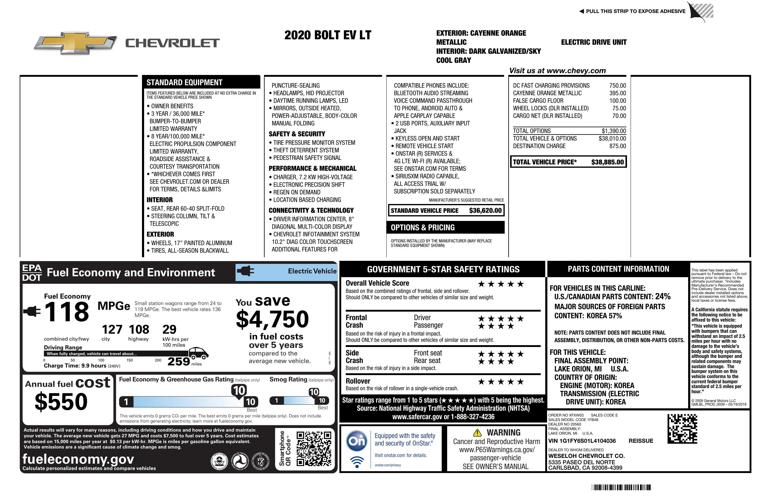 2020 Chevrolet Bolt Ev 5dr Wgn Lt