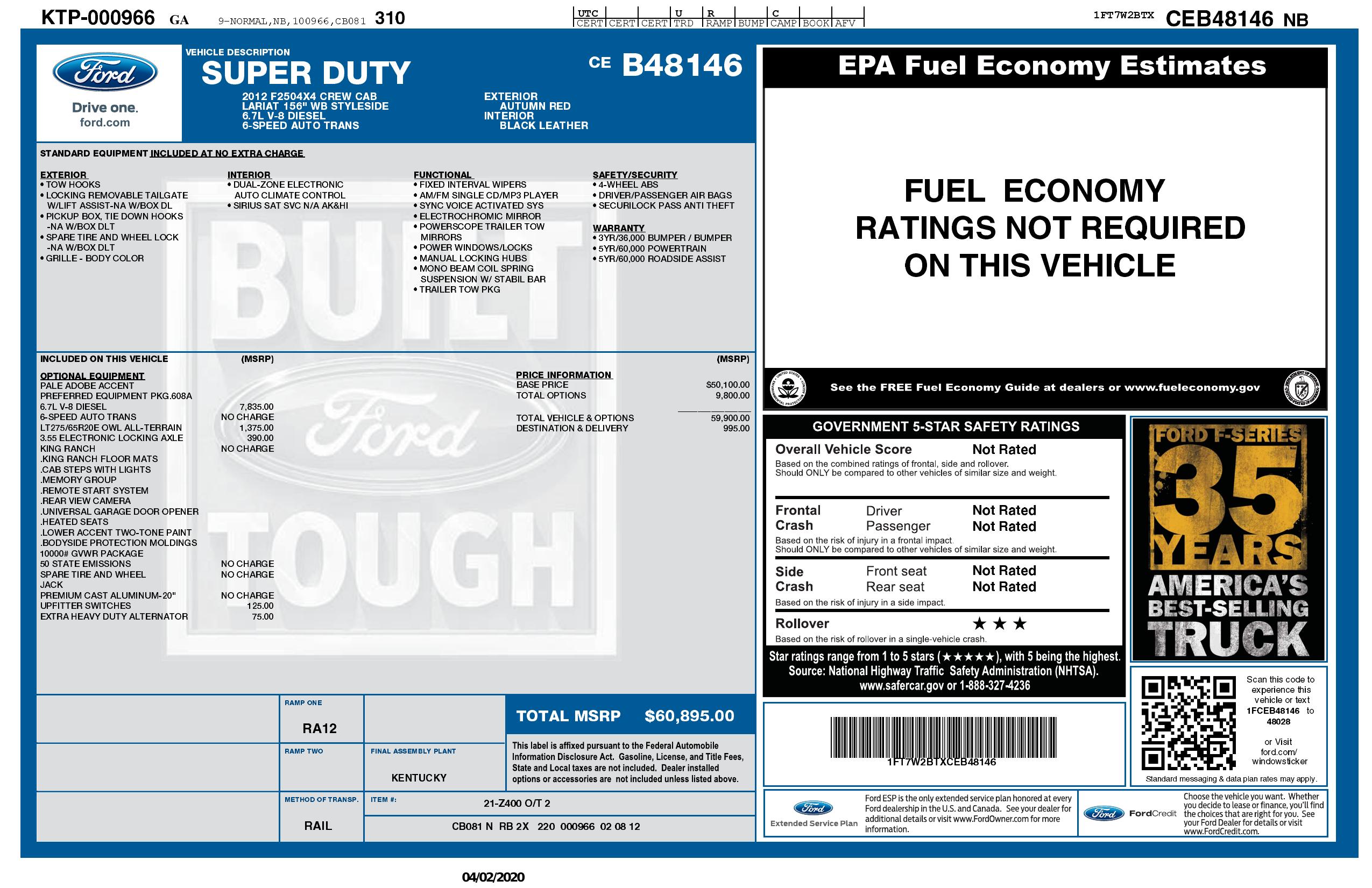 2012 Ford Super Duty F 250 Srw 4 Wd Crew Cab