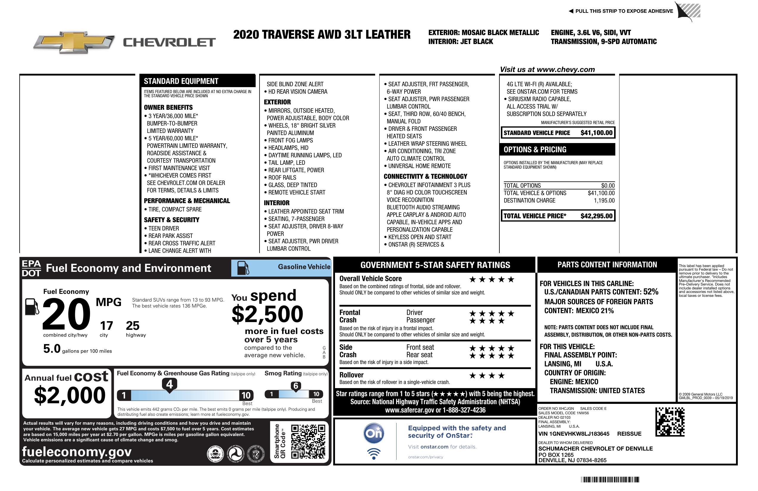2020 Chevrolet Traverse Awd 4dr Lt Leather