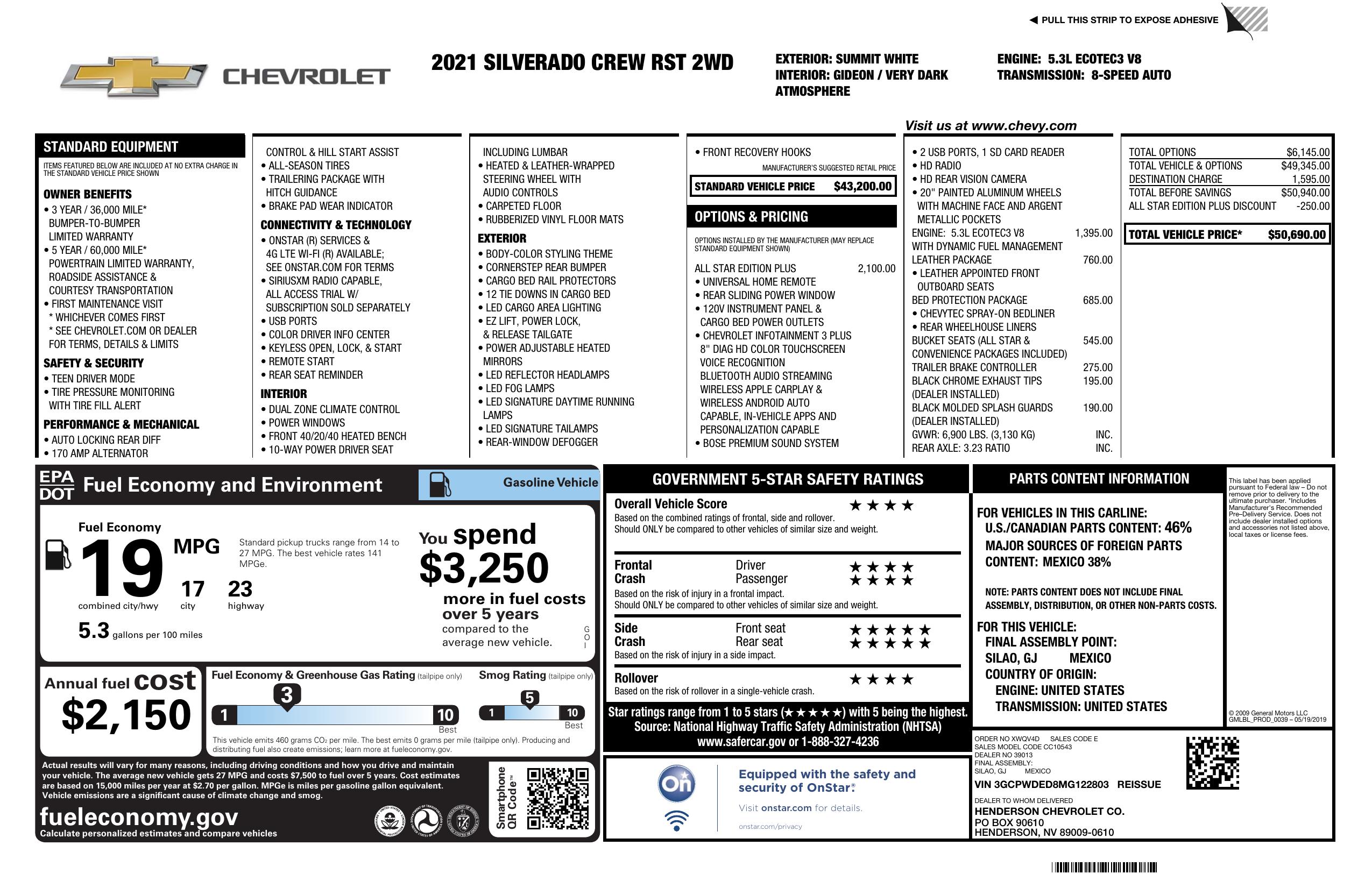 2021 Chevrolet Silverado 1500 2 Wd Crew Cab 147" Rst