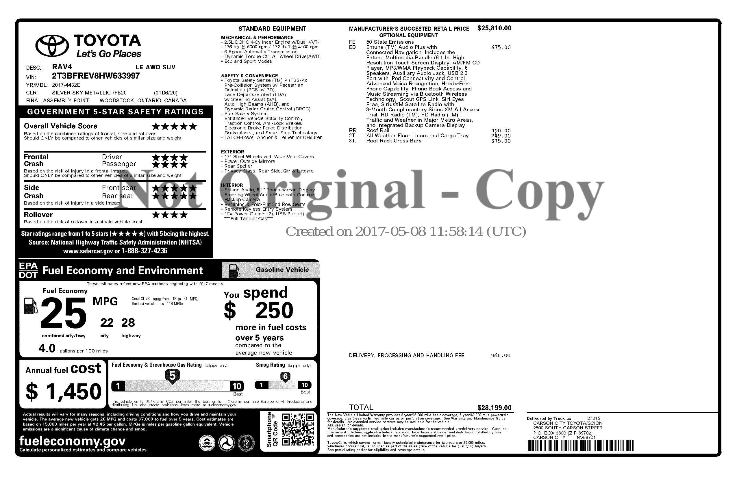 2017 Toyota Rav4 Le Awd (Natl)
