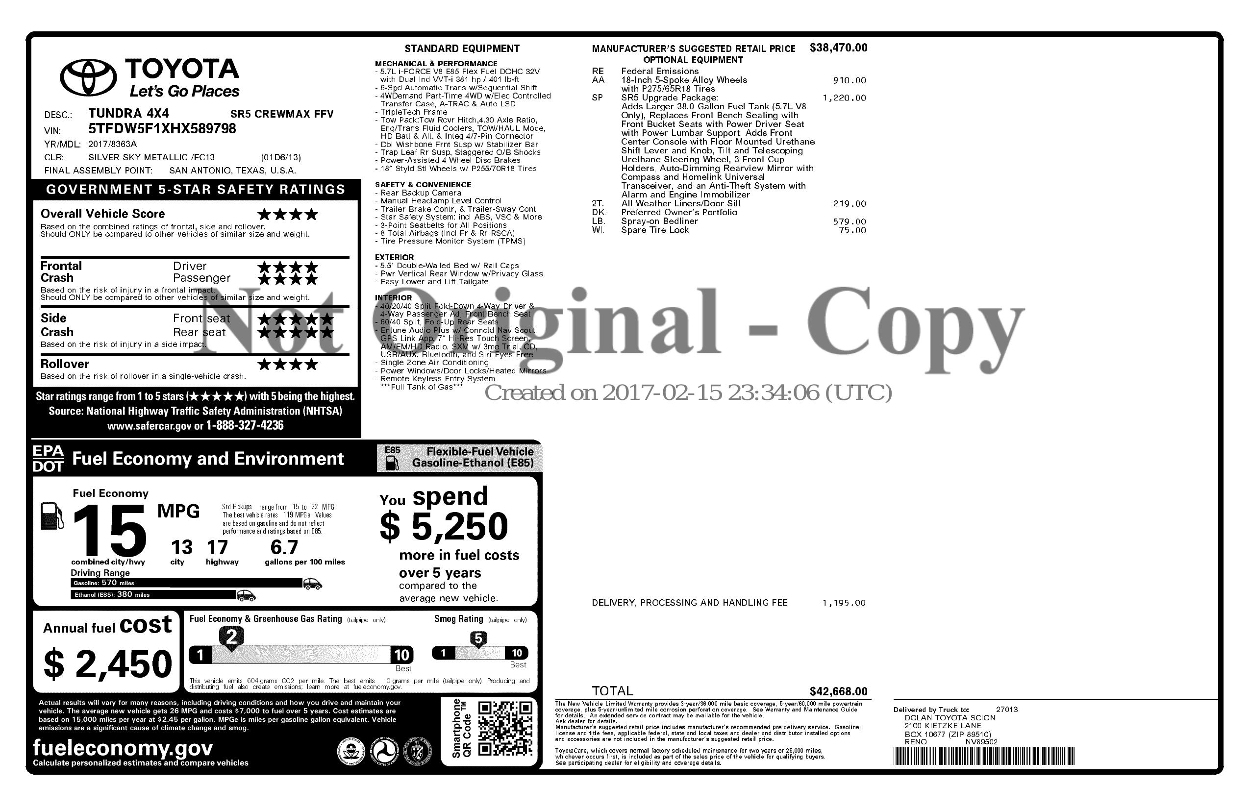 2017 Toyota Tundra 4 Wd Crew Max 5.5' Bed 5.7 L Ffv (Natl)