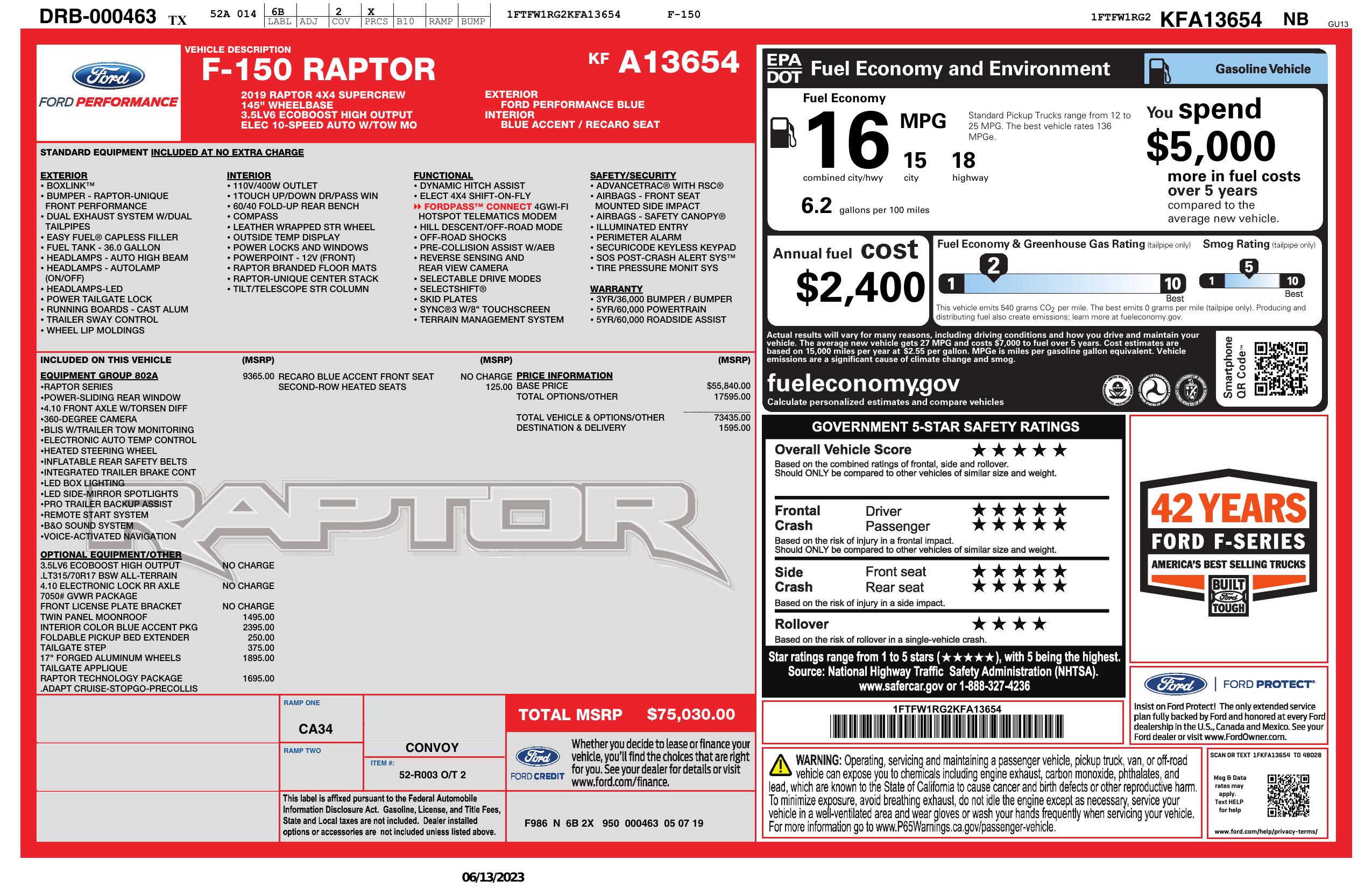 2019 Ford F 150 Raptor 4 Wd Super Crew 5.5' Box