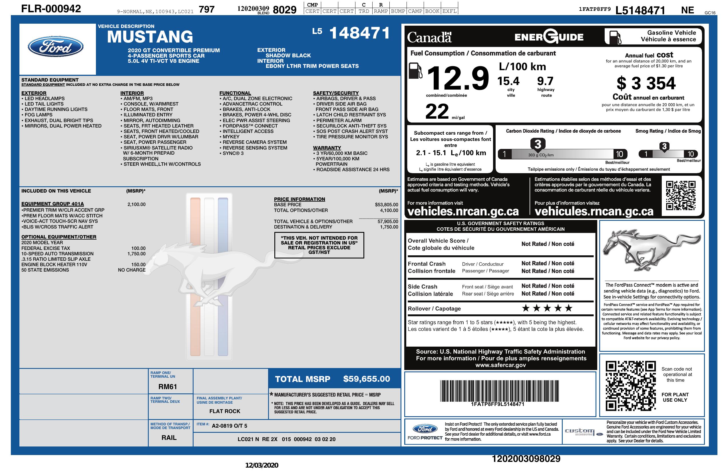 2020 Ford Mustang Gt Premium Convertible
