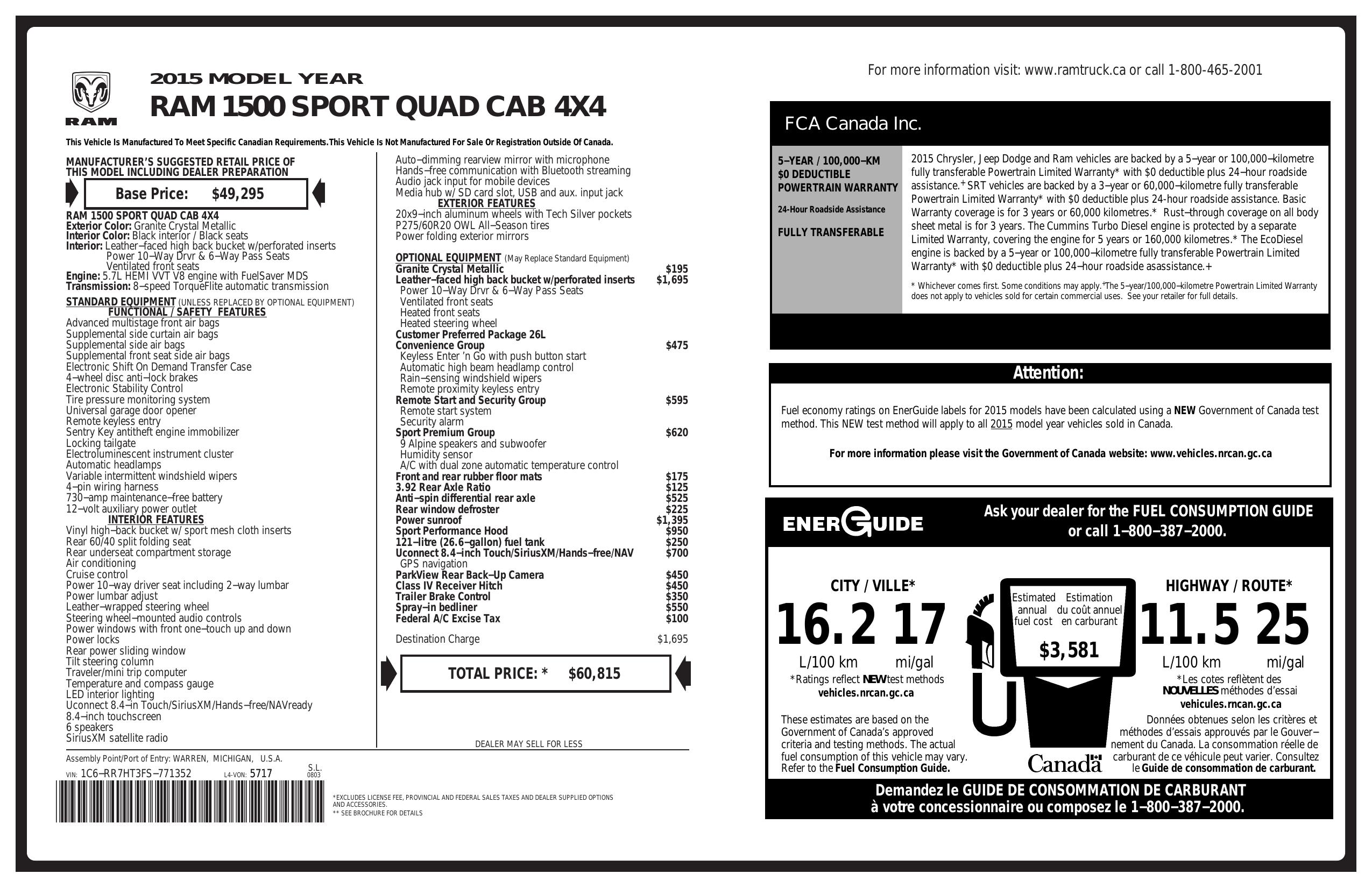 2015 Ram 1500 4 Wd Quad Cab 140.5" Sport
