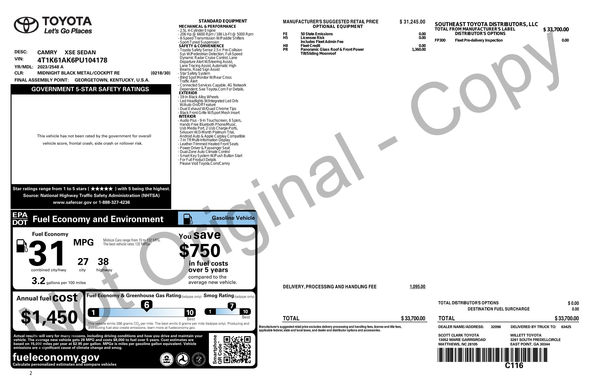 2023 Toyota Camry Xse Auto (Natl)