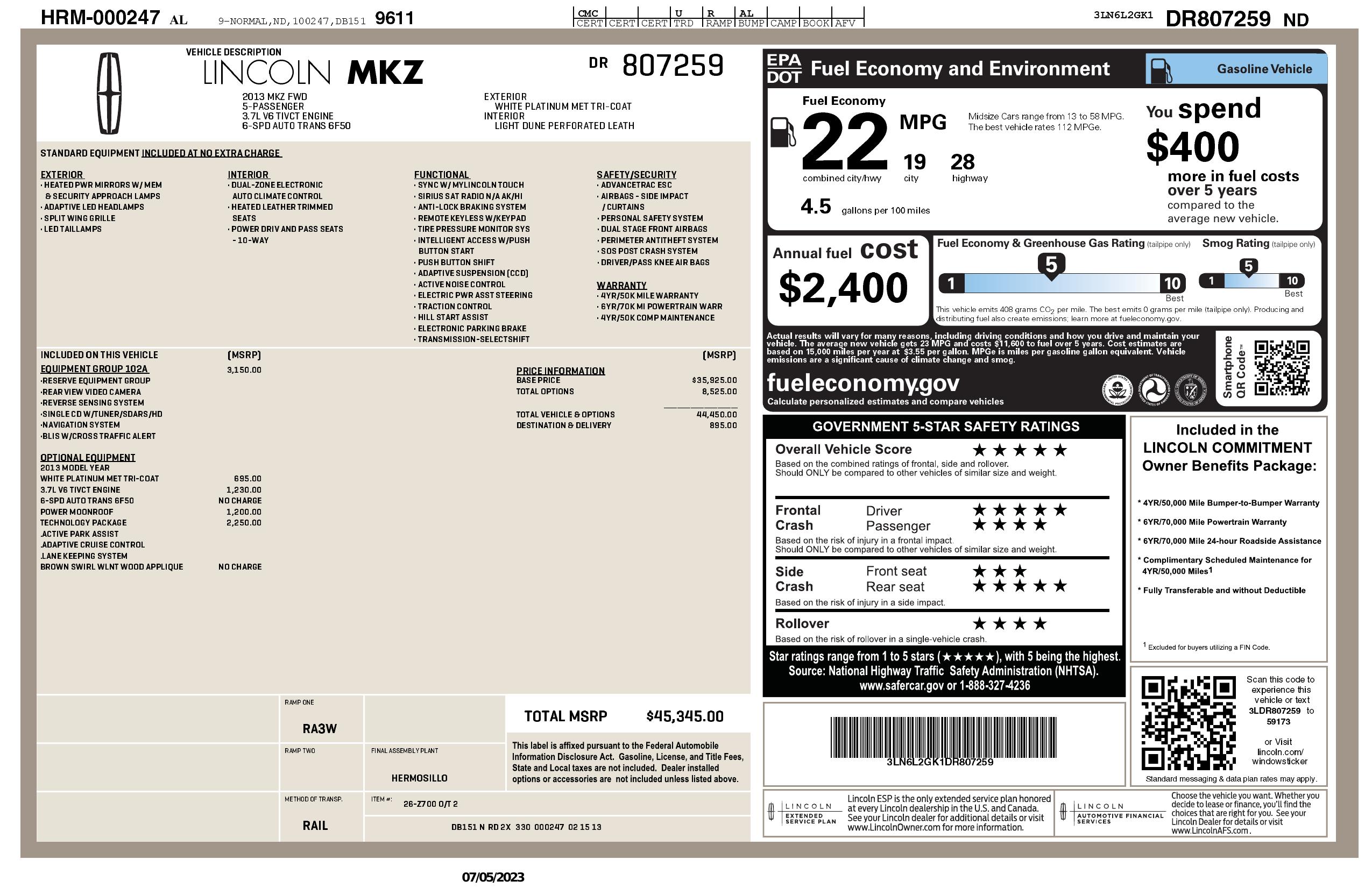 2013 Lincoln Mkz 4dr Sdn Fwd