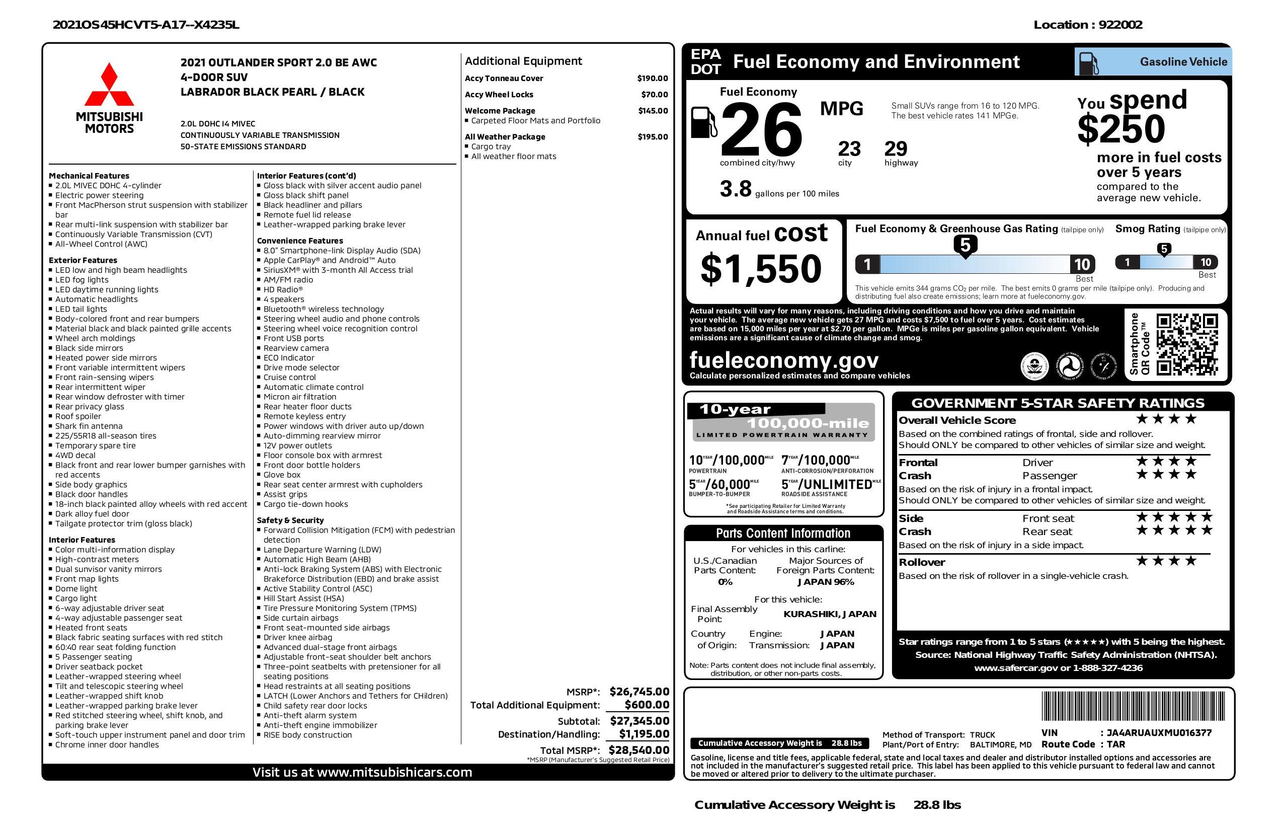 2021 Mitsubishi Outlander Sport 2.0 Awc Cvt