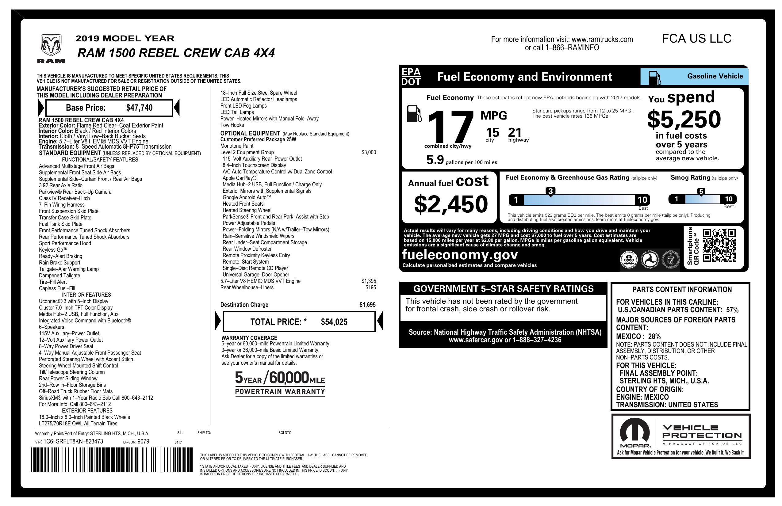 2019 Ram 1500 Rebel 4x4 Crew Cab 5'7" Box
