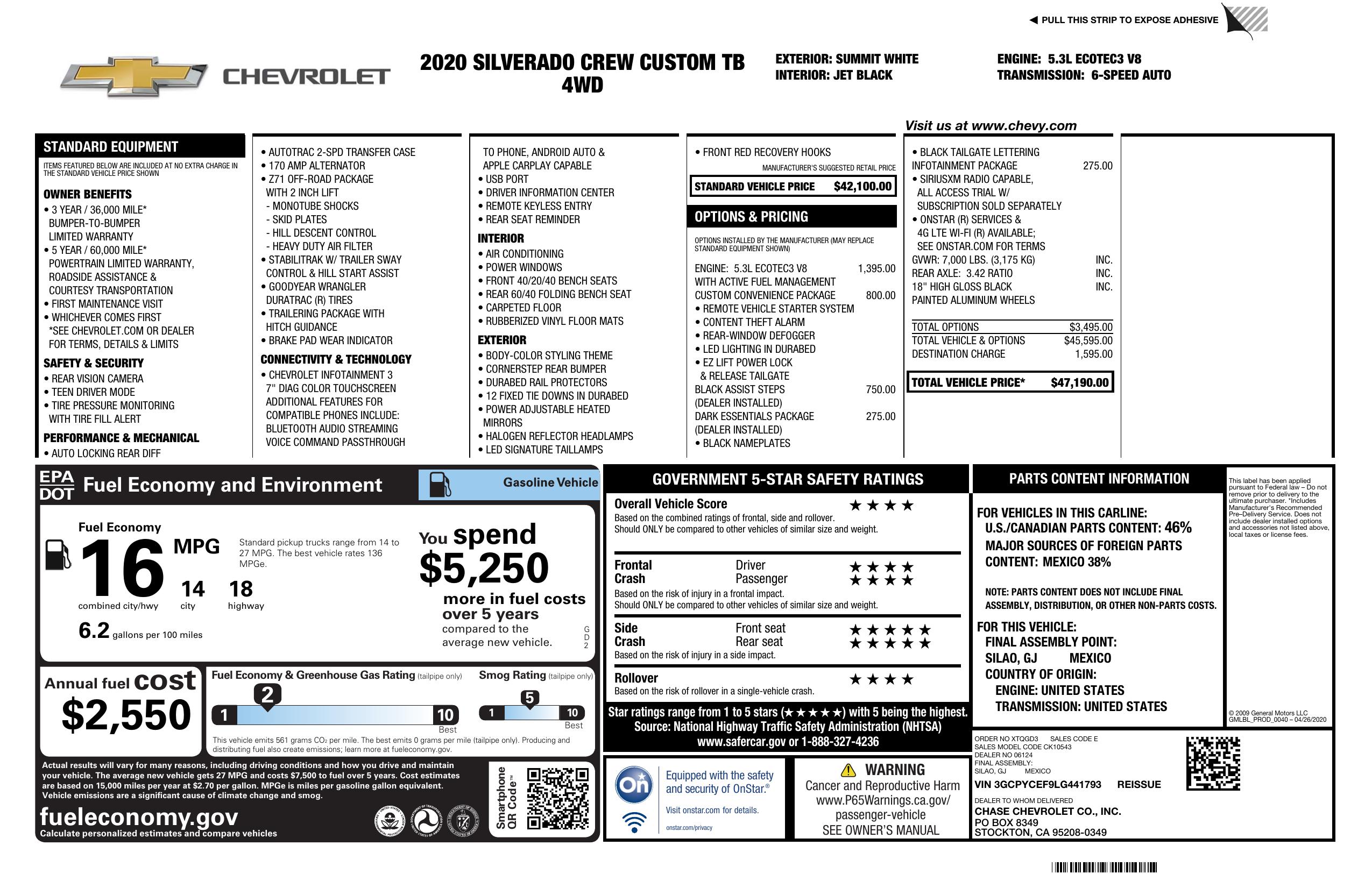 2020 Chevrolet Silverado 1500 4 Wd Crew Cab 147" Custom Trail Boss