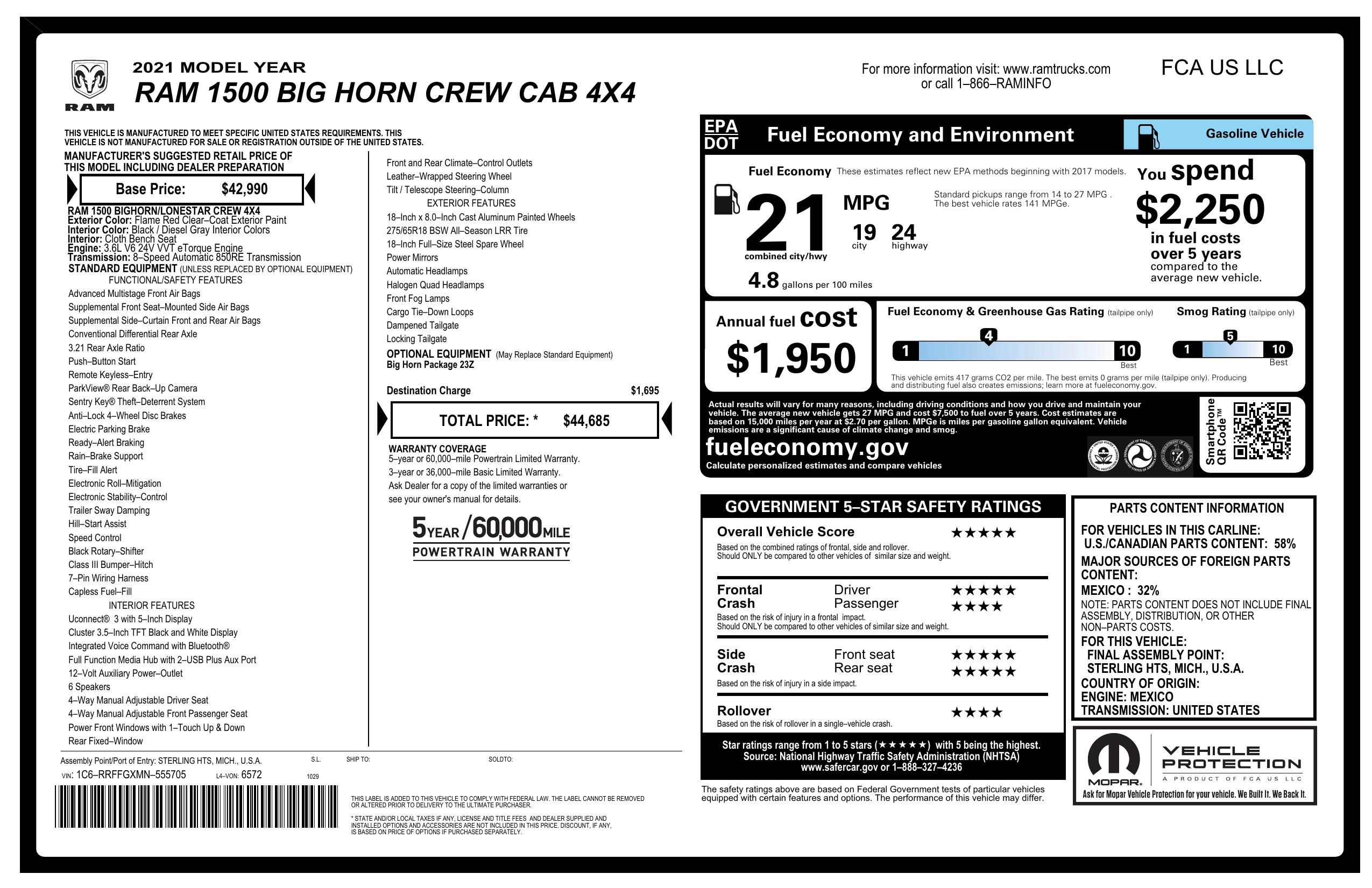 2021 Ram 1500 Big Horn 4x4 Crew Cab 5'7" Box