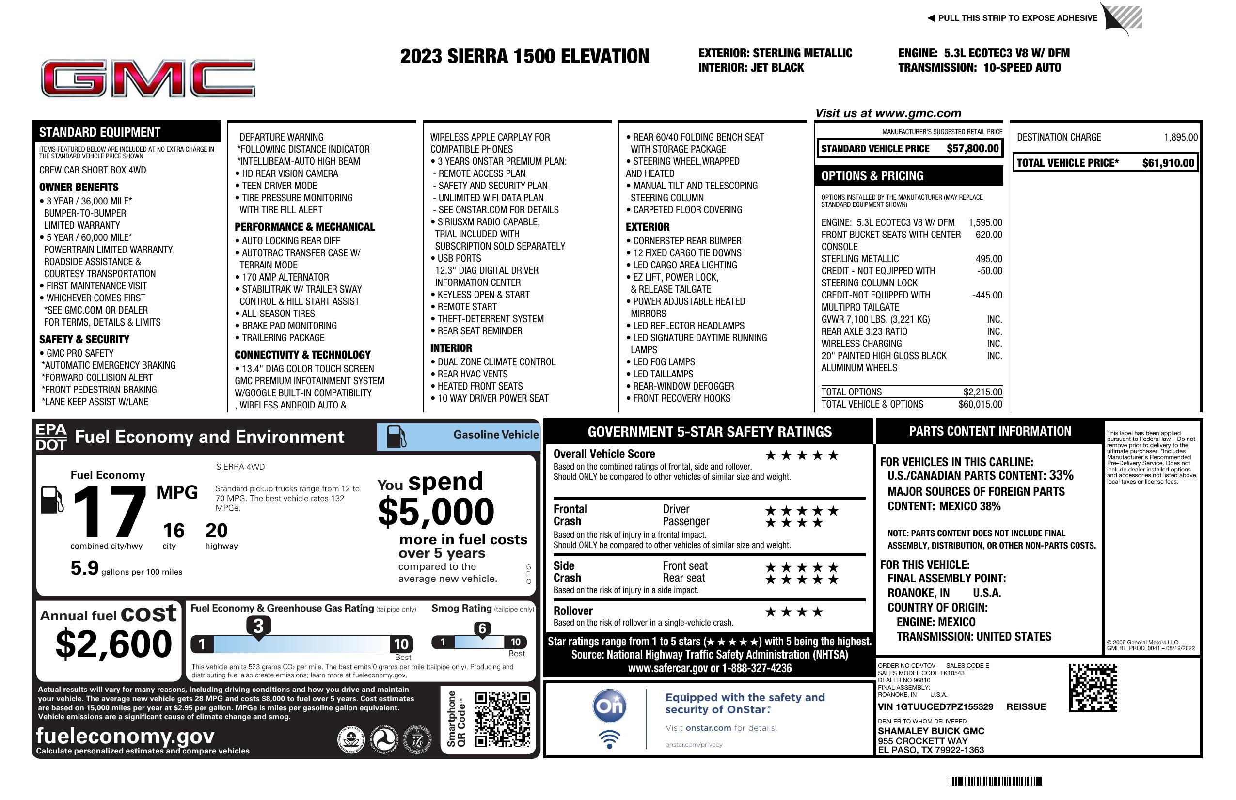 2023 GMC Sierra 1500 4 Wd Crew Cab 147" Elevation W/3 Sb