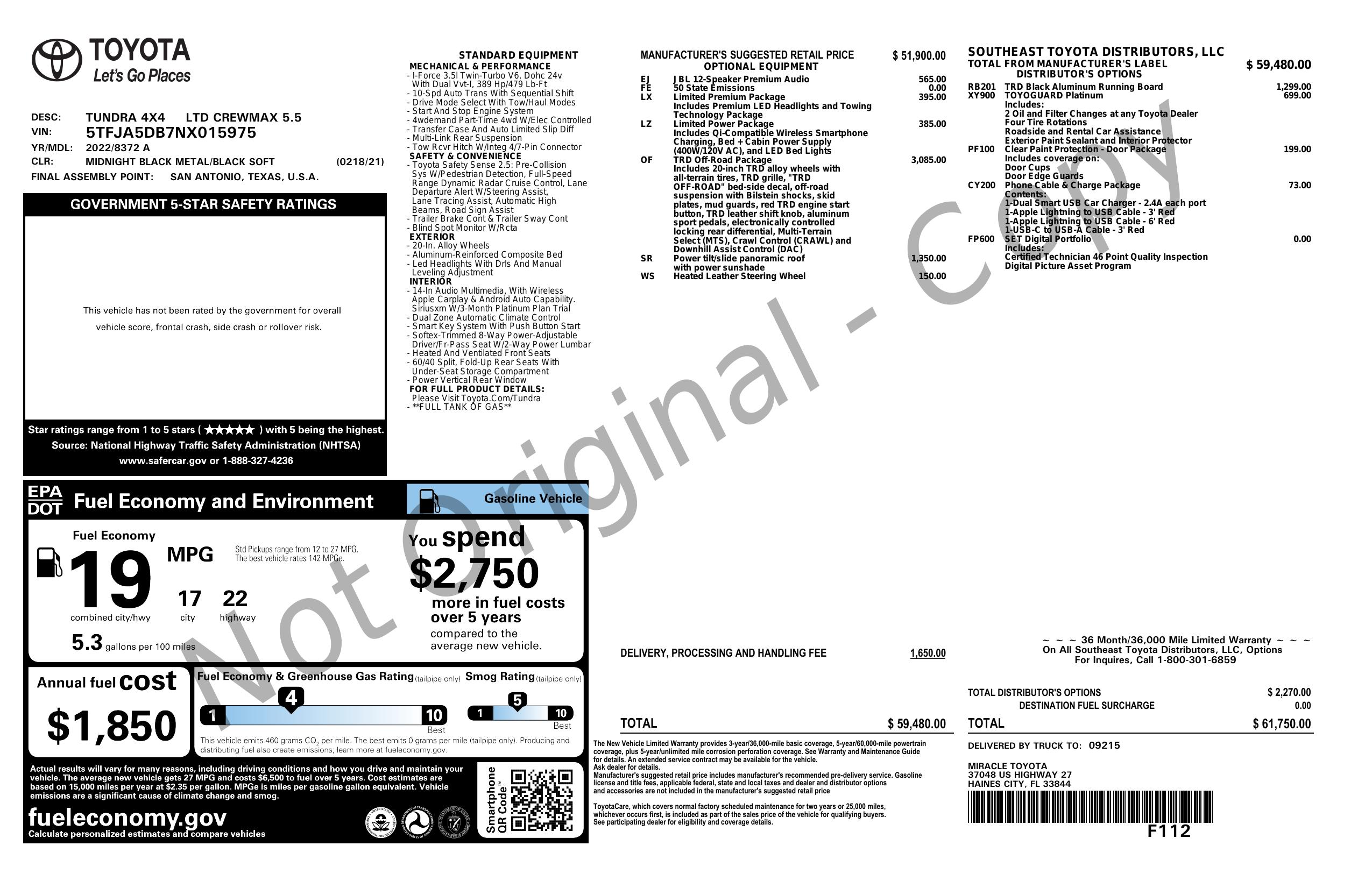 2022 Toyota Tundra 4 Wd Limited Crew Max 5.5' Bed (Natl)