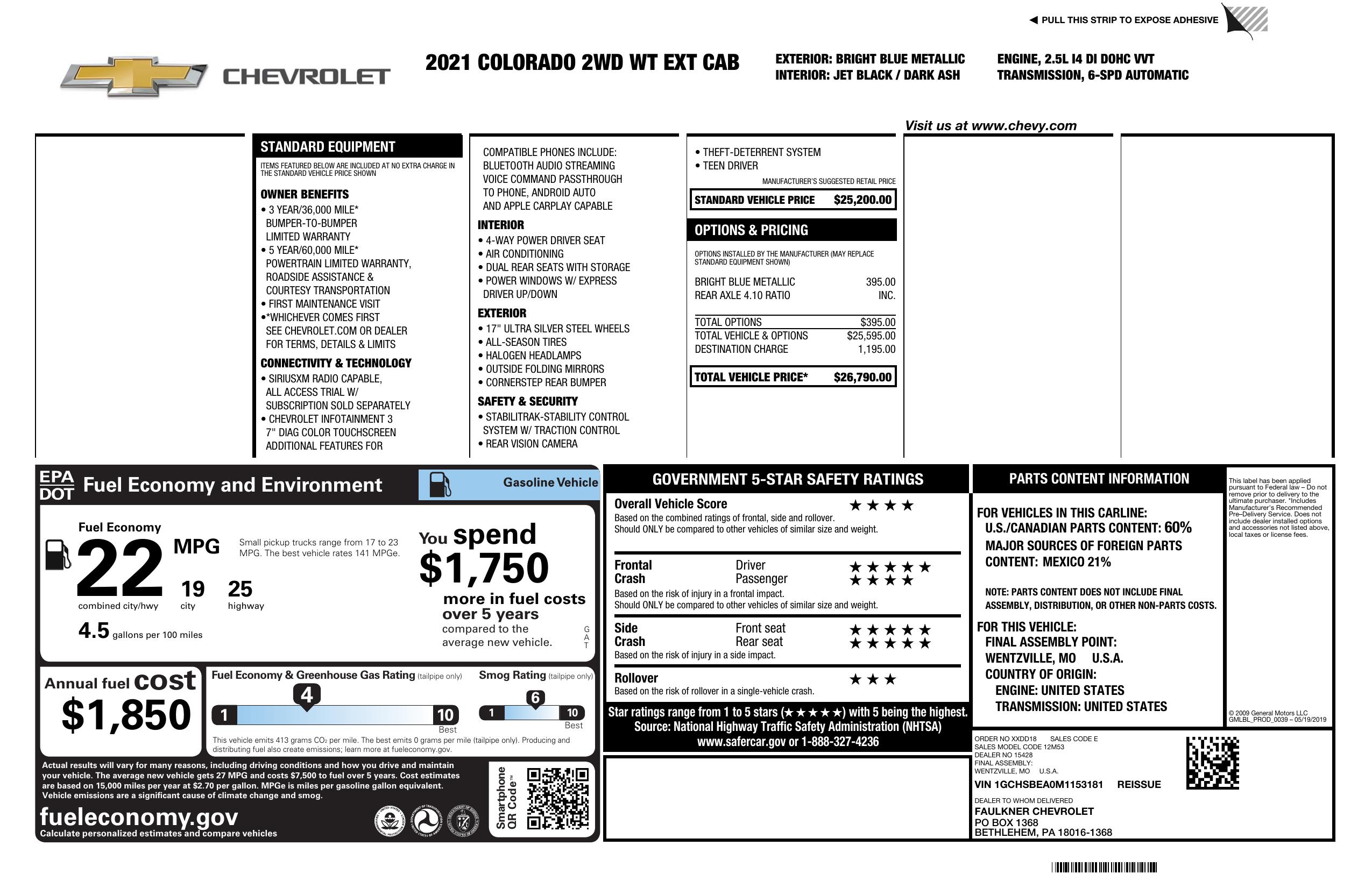 2021 Chevrolet Colorado 2 Wd Ext Cab 128" Work Truck