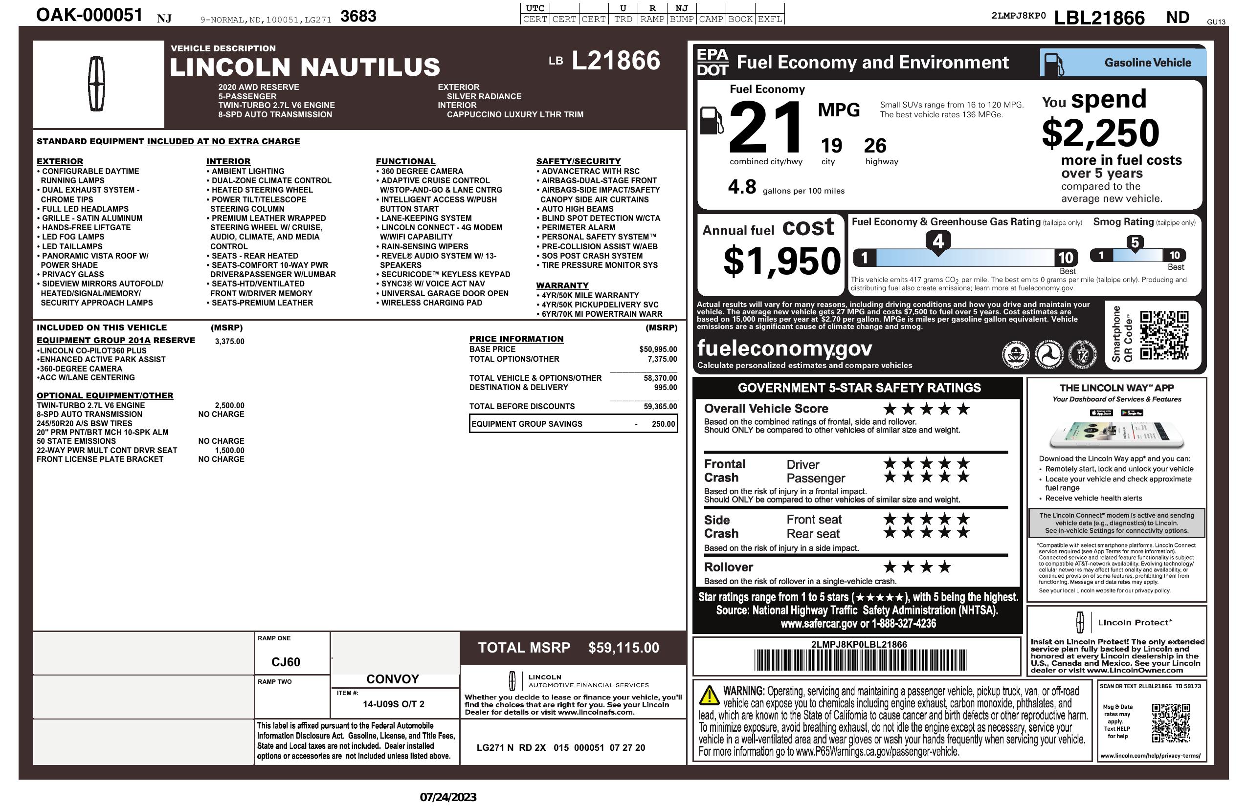 2020 Lincoln Nautilus Reserve Awd