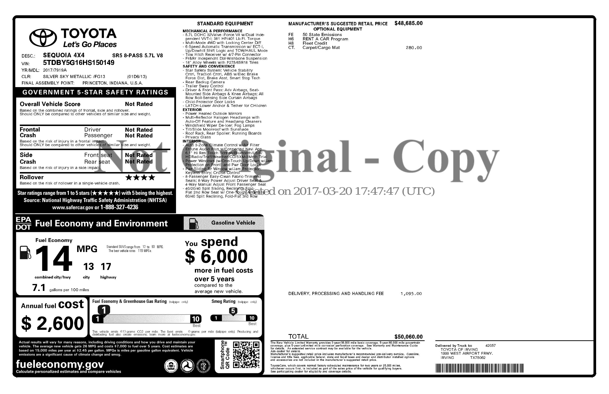 2017 Toyota Sequoia Sr5 4 Wd (Natl)