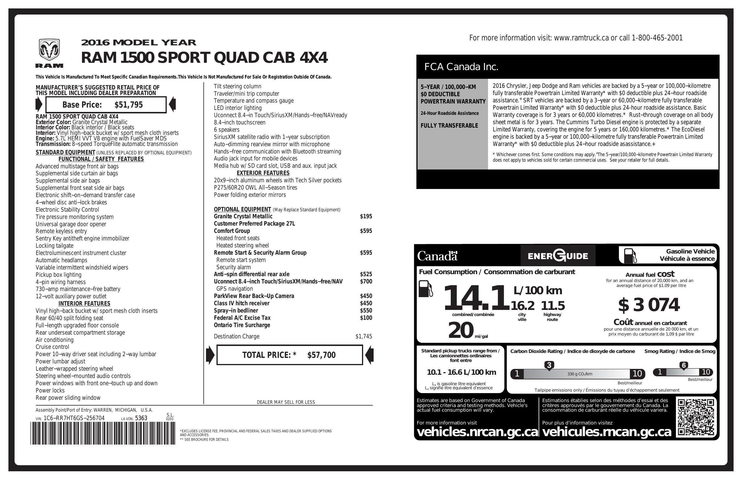2016 Ram 1500 4 Wd Quad Cab 140.5" Sport