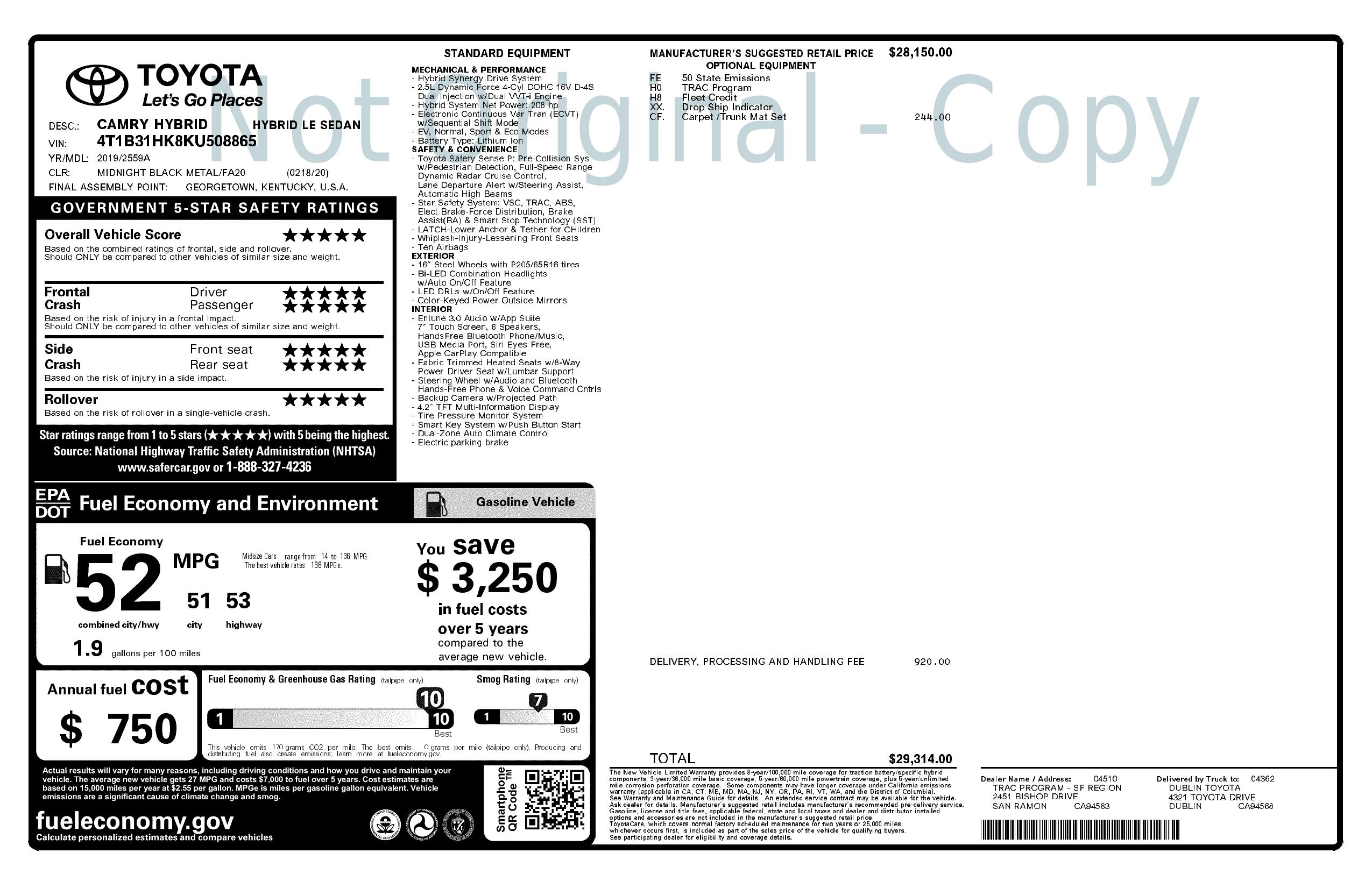 2019 Toyota Camry Hybrid Cvt (Natl)