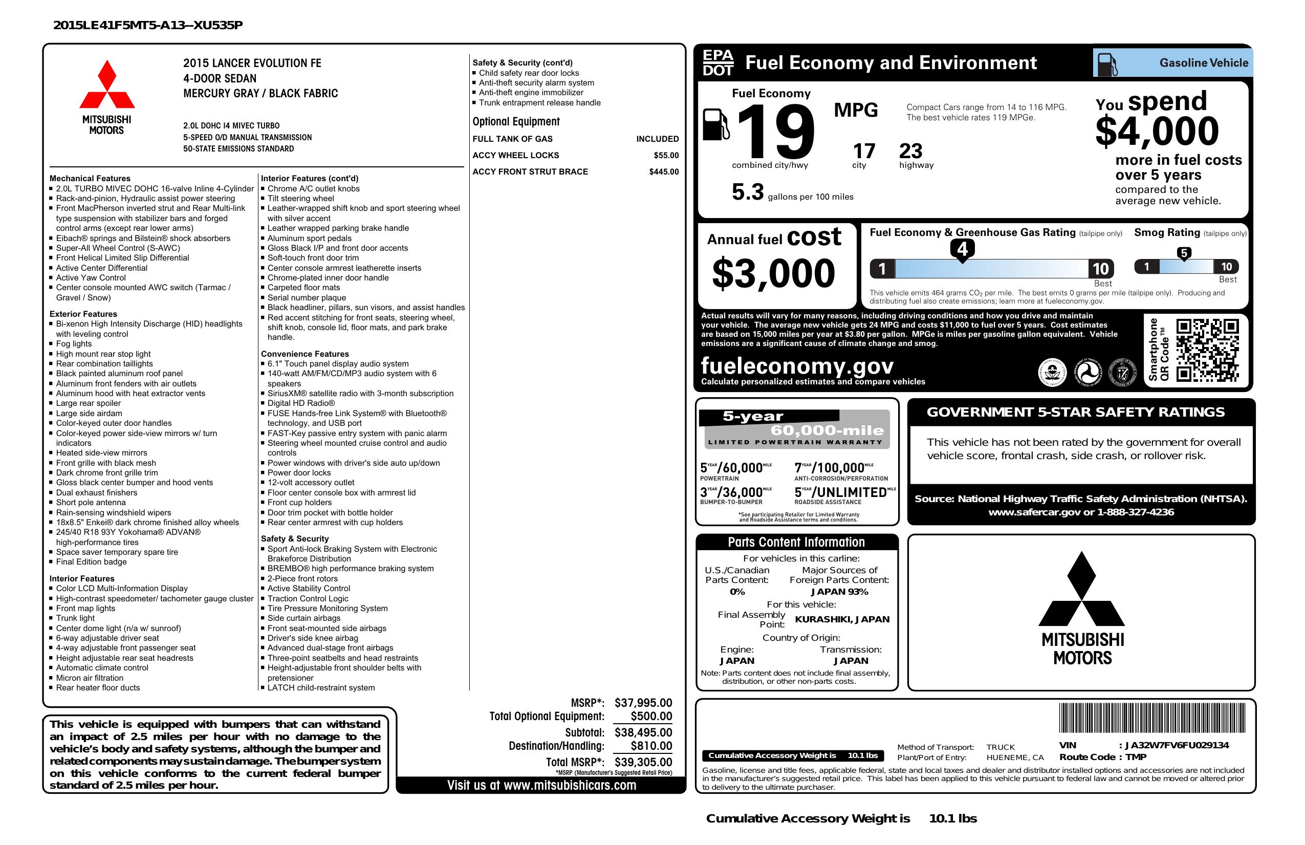 2015 Mitsubishi Lancer Evolution 4dr Sdn Man Final Edition