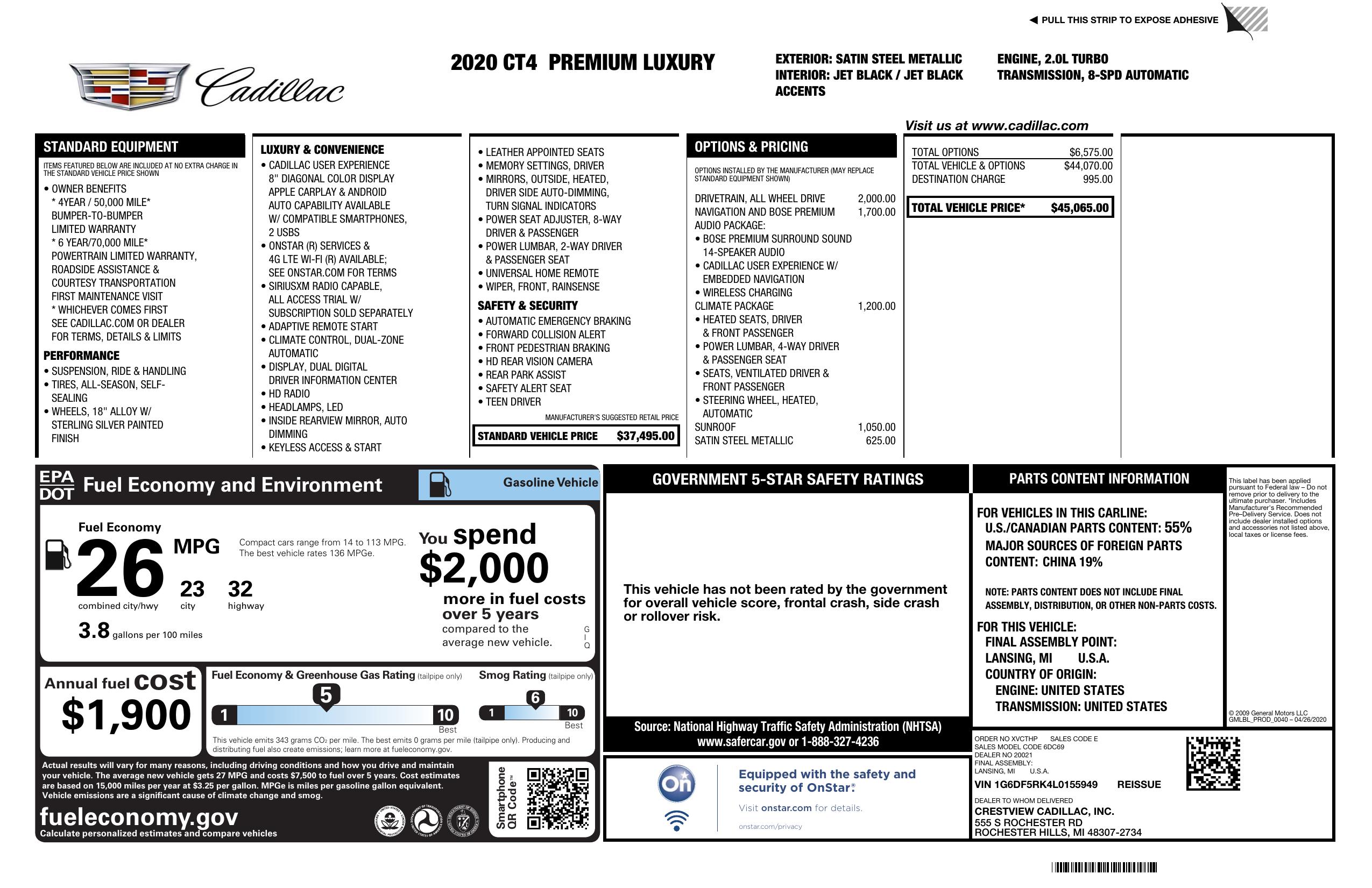 2020 Cadillac Ct4 4dr Sdn Premium Luxury
