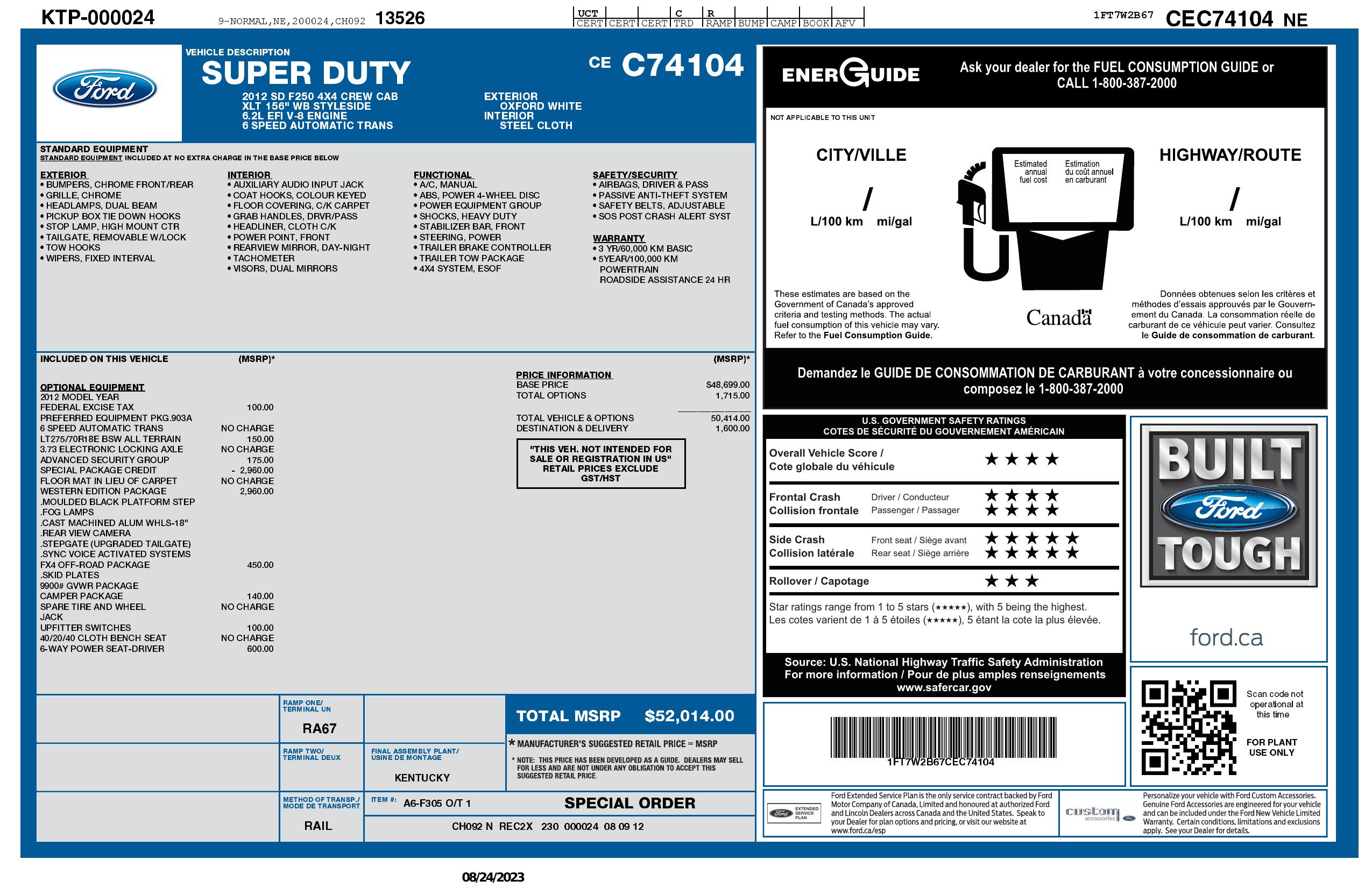 2012 Ford Super Duty F 250 Srw 4 Wd Crew Cab