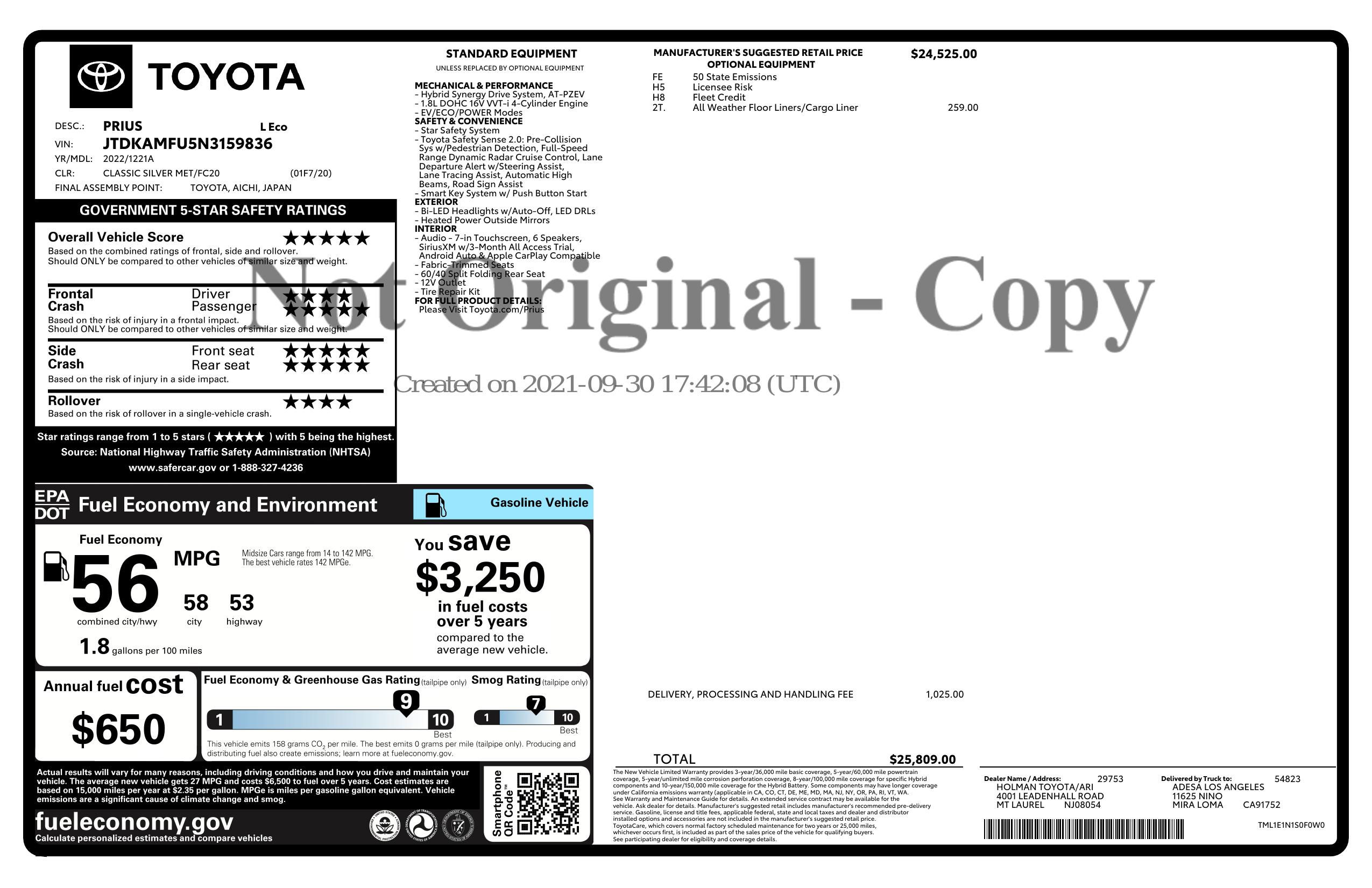 2022 Toyota Prius (Natl)